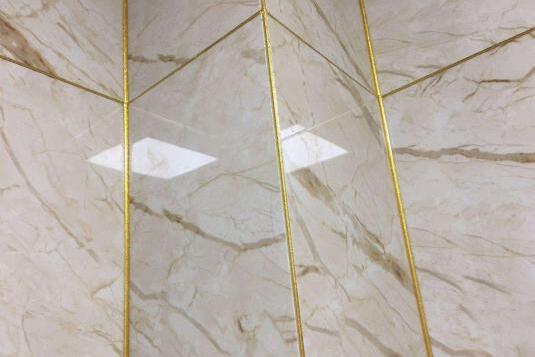 3、百搭法:选择任意百搭的颜色,就比如金色,金色之所以这么受欢迎,就是因为常见的瓷砖都可以搭配金色美缝,而且效果还不错。其实除了金色是百搭的,白色、黑色、银色也是百搭色,这些颜色有勾边的效果,瓷砖整体显得大气。