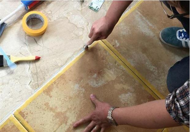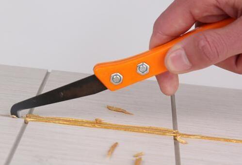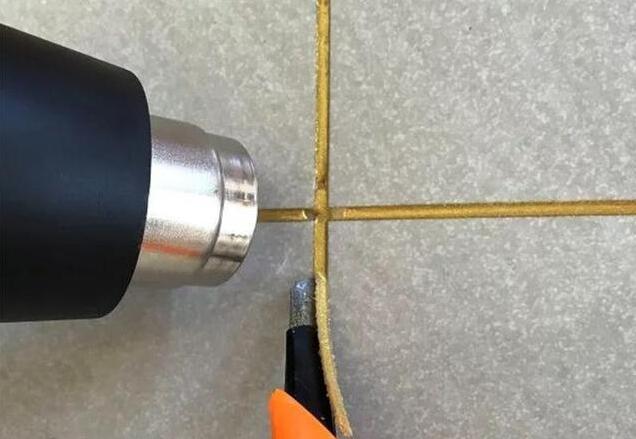 针对这种已经固化的美缝剂,需要先将美缝剂吹软再进行处理,用热风枪对着吹一段时间,受到长期高温的影响,美缝剂一下就软化了,然后再用清缝锥将美缝剂铲出来,清理干净之后再进行下一步。如果是使用多年的缝隙,还要看看里面是否有杂质,需要清理干净再重做美缝。