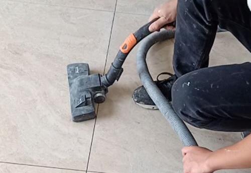 灰尘不仅会影响美缝剂的固化,还会影响美缝剂的附着力,清理完缝隙之后,一定要先将地面的灰尘全部清理干净。不要局限于缝隙两侧的灰尘,瓷砖表面的也算,也要一并清理掉,不然风一吹,灰尘和杂质就粘到美缝剂上面去了。