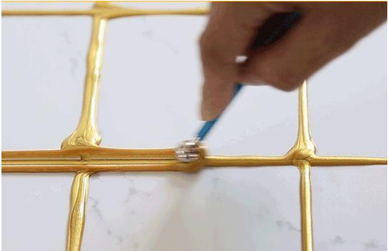 美缝打完胶之后就要开始压缝了,压缝的作用就是为了能让美缝表面达到光滑的状态,同时还能将美缝剂压实,与缝隙多接触,增强附着力。但在压缝的时候,工具上很容易沾到美缝剂,一不小心就会带到其他缝隙中,导致平整的表面滴到美缝剂,出现凸出的颗粒。在压缝的时候一定要注意,工具上只要沾到美缝剂就要及时擦干净,避免有的缝隙压的不平整,还会导致其他缝隙出现塌陷。